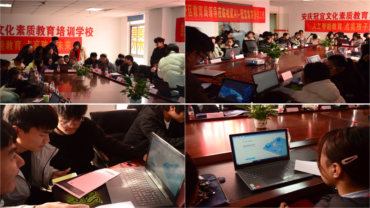 为更好地了解“智适应”教育在中小学学科教学中的应用,促进高校教育技术学专业的人才培养,同时加强与地方教育主管部门、学校的交流与合作,12月28日上午,教师教育学院联合冠宜文化素质教育培训学校举行“智适应教育”观摩研讨会。教师教育学院院长吴云助、教育技术学专业负责人韩建华,经开区教育局局长阮星星、主任王贵忠,冠宜教育学校校长喻红,十六中校长助理胡章平、团委书记余洋,中兴小学副校长戴婷、教师刘桂芳,松鼠AI安徽省运营中心总监金继善,以及教育技术学专业全体师生参加了研讨会。
