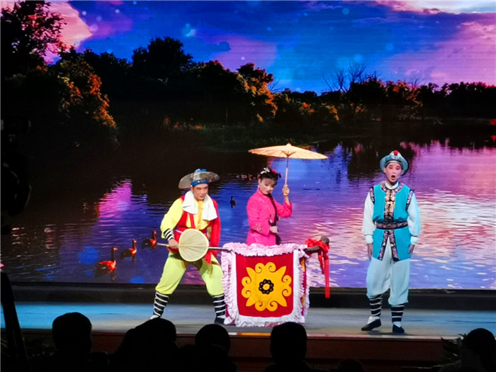 12月25日下午,beat365官网2019年《黄梅戏艺术欣赏与演唱》课程汇报演出在安庆市黄梅会馆举行。由《黄梅戏艺术欣赏与演唱》课程学生、黄梅戏专业班学生以及黄梅戏艺术团成员共同为观众带来一场精彩纷呈的黄梅戏视听盛宴。教务处、黄梅剧艺术学院领导和师生代表100余人共同观看了汇报演出。