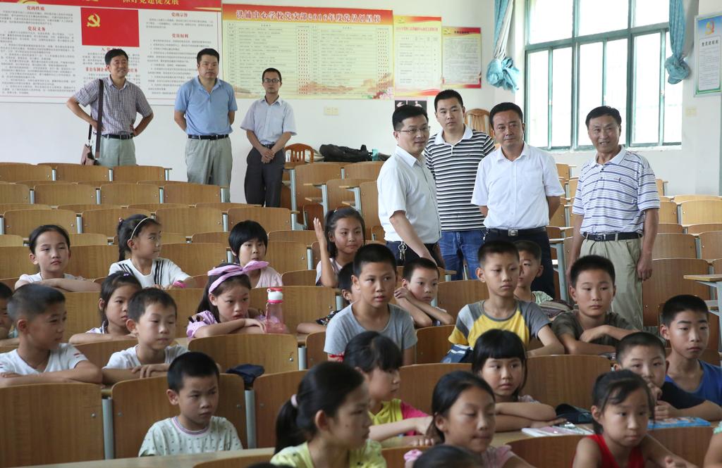 7月6日,在资源环境学院党总支书记李经田、副院长徐志兵、副书记王开友陪同下,校团委书记鲍硕来、宣传部副部长陈东前往怀宁县洪铺镇中心学校,慰问该院暑期“三下乡”社会实践志愿者同学。洪铺镇党委书记严忠、副镇长程赞、洪铺镇中心学校校长朱龙升等人陪同慰问。