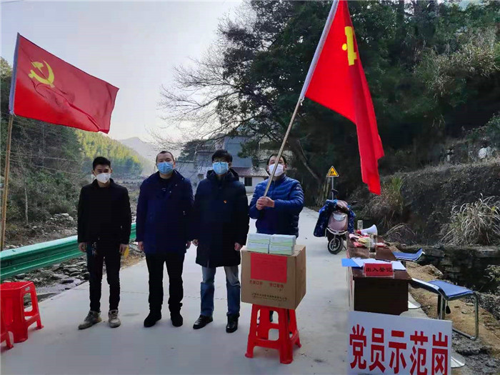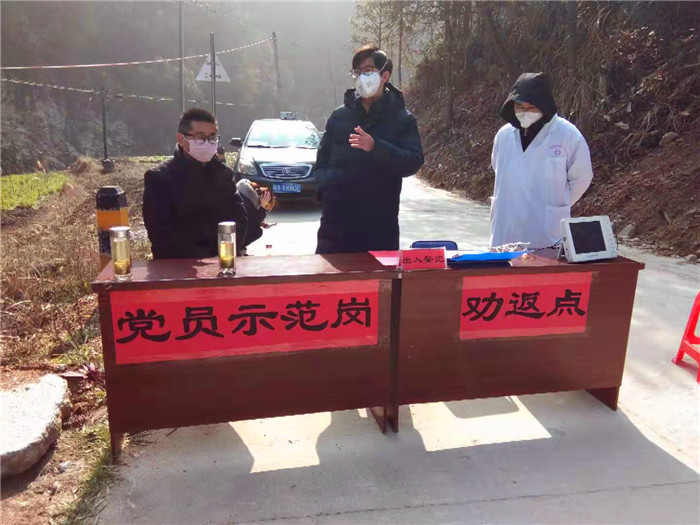 一到村,驻村扶贫工作队就转变为疫情防控先锋队,第一时间会同村两委制定周密的疫情防控方案,统筹村级力量,助力抓好联防联控,牵头划片包干,组成以党员干部为主的工作队伍,设立党员示范岗,实施地毯式滚动摸排,切实筑牢阻击疫情的“防火墙”。经村两委地毯式摸排,共排查出由鄂返乡或途经武汉并停留的人员15人。驻村工作队和村两委每天入户动员,对15人的家庭所有人员安排居家隔离,镇、村医护人员每天入户体检,每天两次上报该类人员的健康状况,并为隔离人员送上消毒液、体温计、口罩等相关物品。