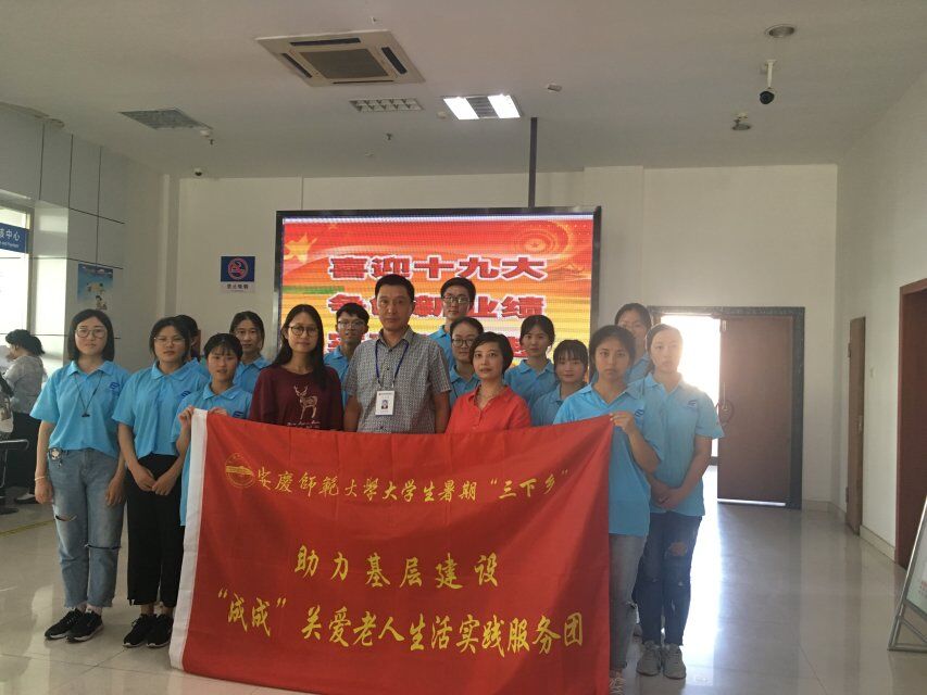 7月23日,学生“四成”服务大厅关爱老人实践小队成员冒着酷暑,前往迎江区金城养老中心和安庆市人力资源和社会保障局,开展“三下乡”社会实践活动。