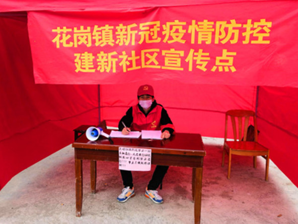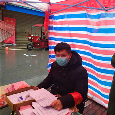 与此同时,在安徽省肥西县花岗镇建新社区也有一个年轻的志愿者身影。他是材料化学专业2016(2)班的解鹏杰,在疫情防控工作开展以来,每天按时到达家乡新冠疫情防控宣传点执勤,坚持站岗11个小时,为来往的人员检测体温、排查症状、做好记录。解鹏杰常说:“作为一名学生党员,这是我应该做的。”