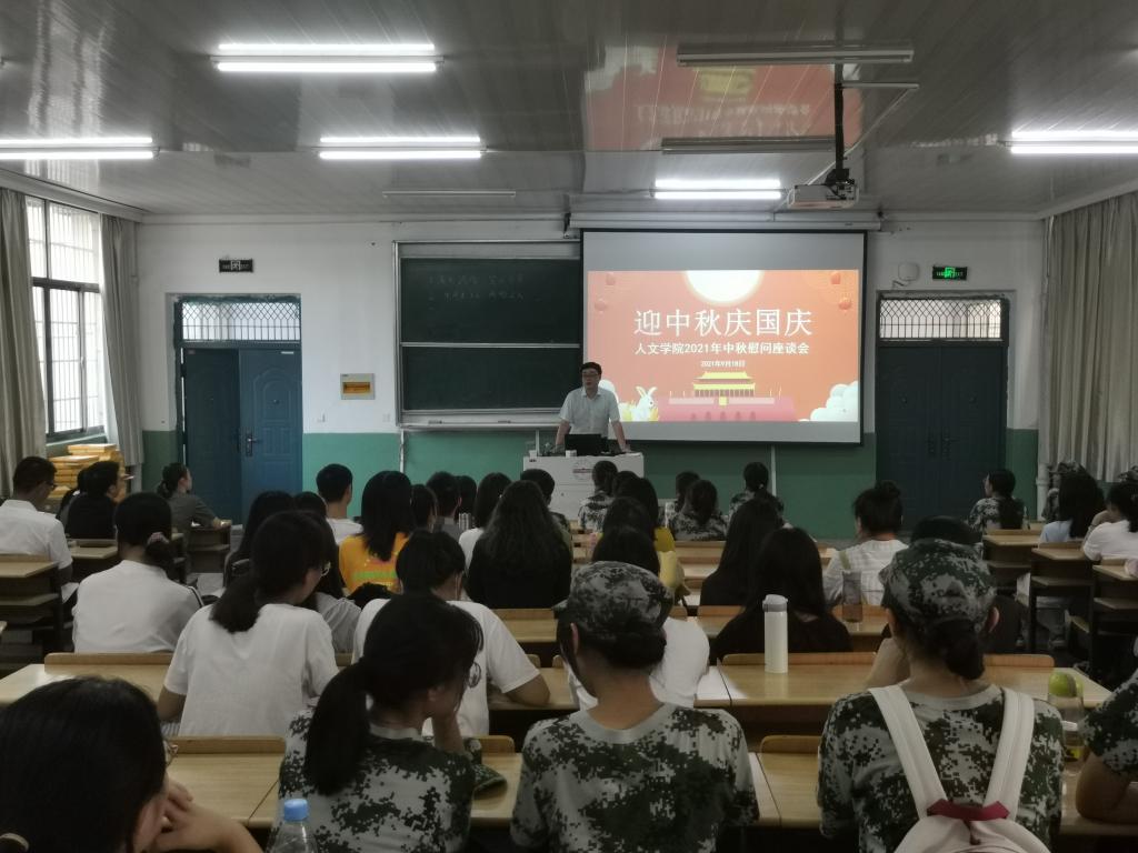 海上生明月,天涯共此时。9月18日,人文学院召开2021年中秋慰问座谈会,副院长汪超、各新生班级辅导员出席会议,2021级全体本科和研究生少数民族学生、外省籍学生参加慰问座谈。会议由党委副书记王波主持。