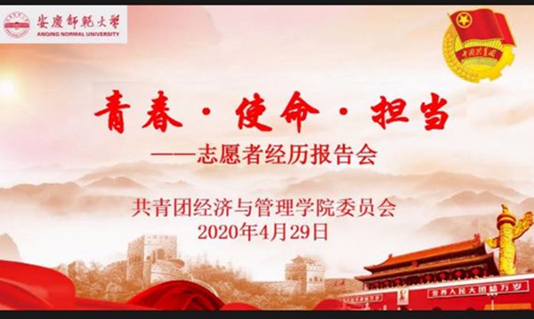 4月29日晚,经济与管理学院举办“青春˙使命˙担当——志愿者经历系列报告会”,学院两名志愿者代表向大家们分享了战“疫”经历和心得体会。学院党委副书记周毅与学院2018级、2019级全体学生共同观看直播。