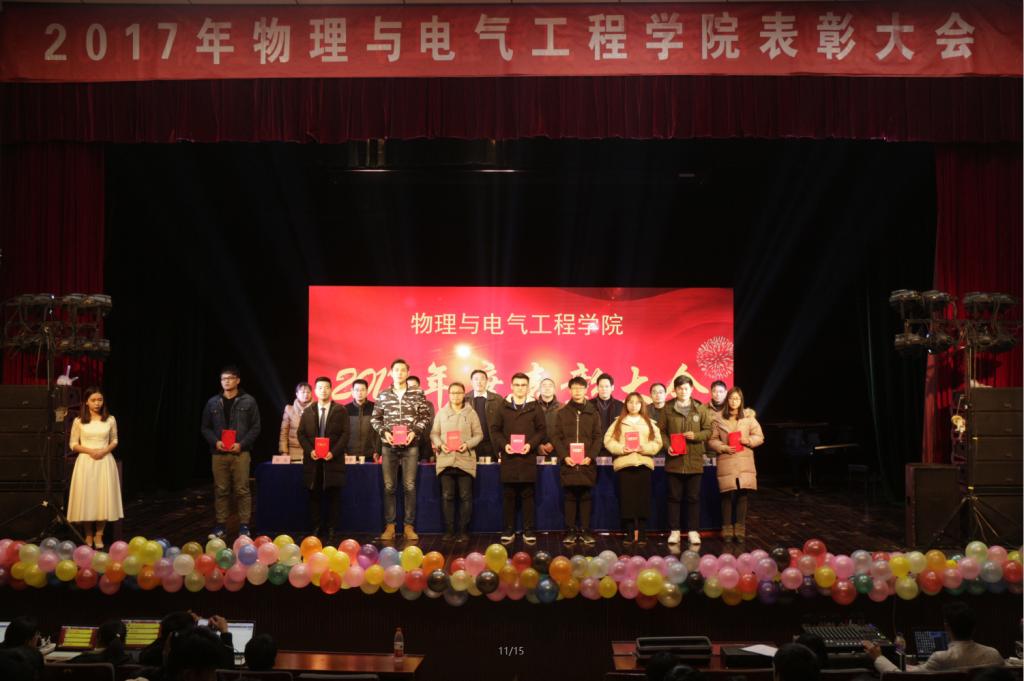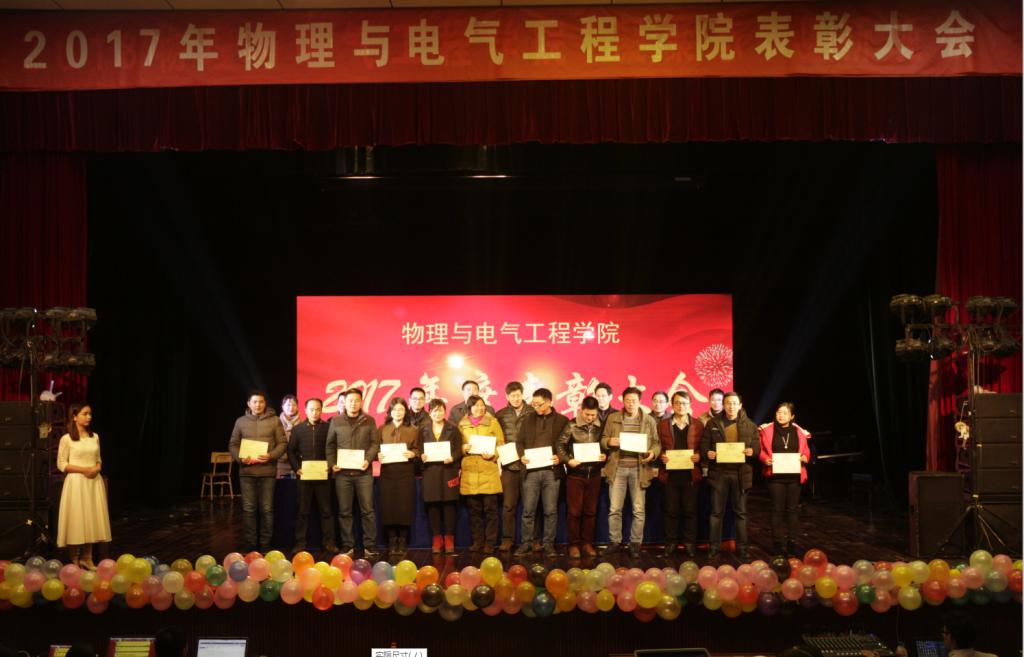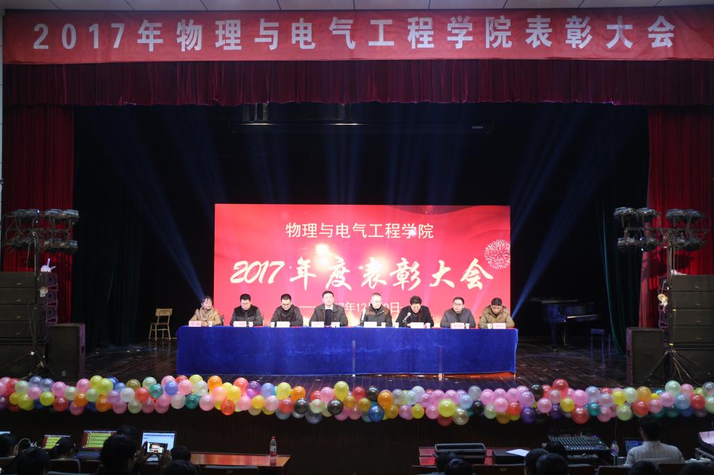 12月20日下午,物理与电气工程学院举办2017年度学生优秀个人、先进集体以及教师先进个人表彰大会。院党总支书记金根山、学生处副处长夏建华、副院长江巨浪、全体辅导员和教师代表参加此次表彰大会。会议由院党总支副书记、副院长江贵生主持。