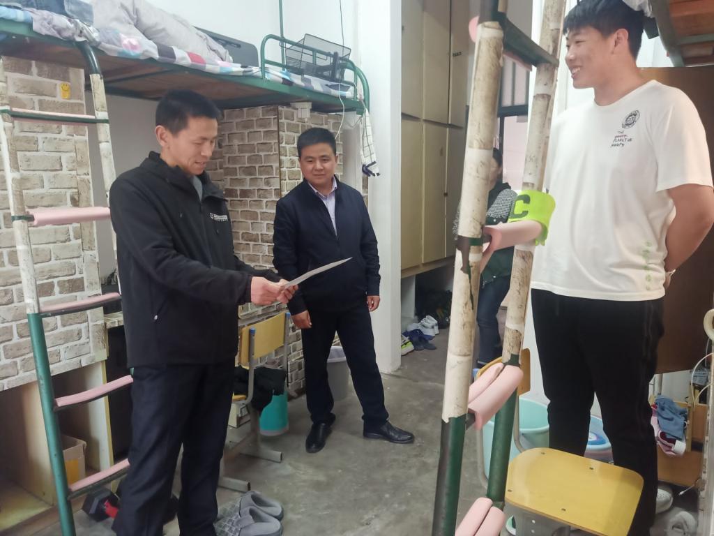 4月15日,学院党委书记朱昌流、副书记张辉带领全体辅导员深入学生寝室,开展国家安全教育宣传及安全隐患排查活动。朱昌流向学生介绍了国家安全教育日相关知识,要求同学们要不断强化国家安全意识,积极学习国家安全知识。朱昌流强调,国家安全离我们并不遥远,就在每个人的身边,就在同学们的日常生活中。同学们要结合自身专业学习和日常生活从小事做起,加强安全防范。在学习中要注意实验安全、生态安全等等;在生活中要注意寝室用电、饮食卫生等安全;在网络使用中要注重网络安全,对一些网络信息要增强辨别力,不信谣,不传谣,更不要盲目跟风。每个学生都做好了个人相关安全防范,维护国家安全。