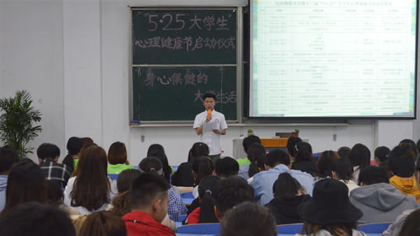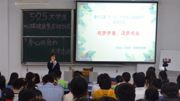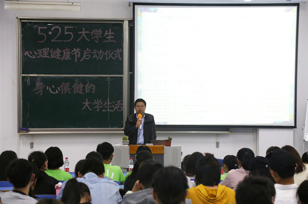 5月8日下午,第十三届“5•25”大学生心理健康节启动仪式在beat365英国官网网站文溯楼108教室进行。学生处副处长汪博武、大学生心理健康教育与服务中心和各学院相关负责老师以及两百多名学生代表参加了启动仪式。