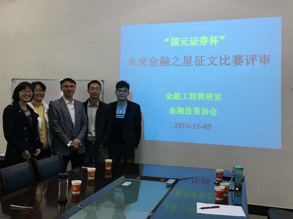 11月5日,经济与管理学院金融工程教研室组织开展“国元证券杯”未来金融之星征文比赛评审工作,金融工程教研室全体教师悉数参加,金融投资协会会长、骨干成员协助老师进行评选工作。