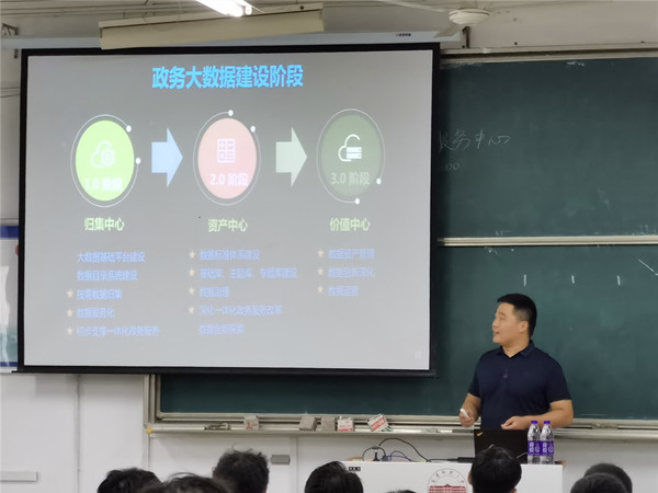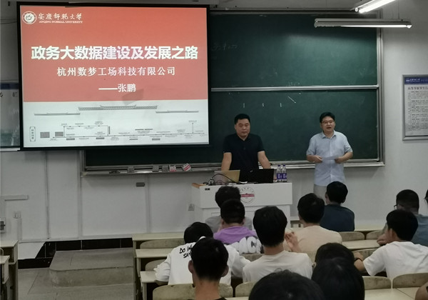 应计算机与信息学院邀请, 9月29日,杭州数梦工场科技有限公司项目经理张鹏在A305做了题为“政务大数据建设及发展之路”的主题报告,该院数据科学与大数据技术和智能科学与技术两个专业全体学生聆听了报告。