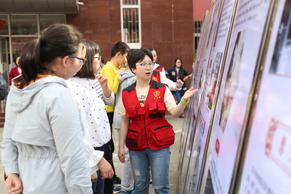 “黄梅戏起源于清中晚期皖、鄂、赣,兴于安庆周边诸乡……”4月24日,安庆市四中教学楼前的广场上,beat365官网20名身穿红色马甲的安庆市博物馆志愿者在展示板前向师生介绍黄梅戏的起源与发展。