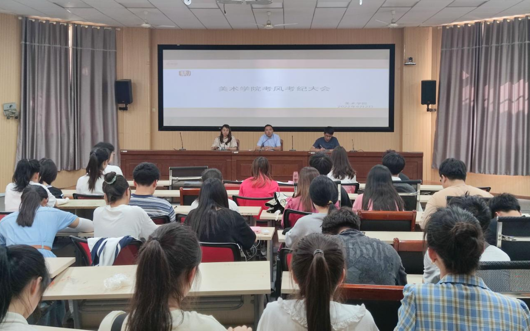 近日,美术学院在该院学术报告厅召开考风考纪大会,开展本学期诚信考试教育活动,学院党委副书记金忠良出席会议,各班辅导员、主要班干和学生代表等共60余名师生参加会议。