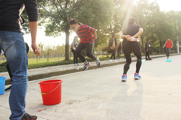 10个站点中有3个游戏区,其中青蛙取水的游戏在运动员们看来是最有意思的环节。两个水桶相隔3米,运动员需要在距离自己近的桶里拿矿泉水瓶,然后蛙跳到前面的水桶里装满水,再跳回去把水倒在桶里,游戏就算完成。“青蛙取水的游戏不仅需要速度,还锻炼体力,我玩得很开心。”法学专业2017(2)班的陈征说,虽然跑完以后气喘吁吁,但还是觉得很有意思。