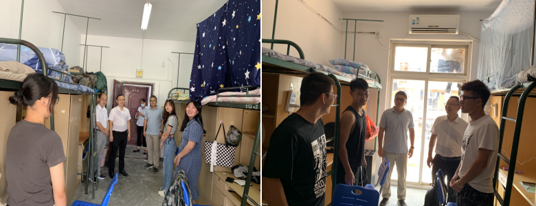 走访过程中,徐晓宁一行与同学们进行了亲切的交流,祝贺同学们开启人生新篇章,询问入学安顿及适应情况,并仔细检查了宿舍安全卫生情况。徐晓宁书记叮嘱同学们要养成良好的学习与生活习惯,尽快适应环境,以昂扬的面貌迎接崭新的大学生活,要勤奋学习,努力增强专业技能,不负青春韶华,不负理想岁月。同时,他希望同学们能够做好大学四年规划,走出寝室、走向操场、强身健体、行健致远,主动参与校园里的文体艺术与创新实践活动。最后,他也提醒同学们做好疫情防控,提高安全意识,多向辅导员老师请教,共同营造温馨、和谐、安全的宿舍环境。
