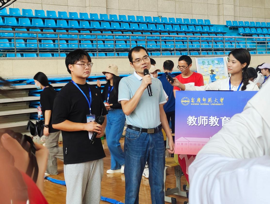 教师教育学院副院长陈效飞为新生介绍了学院专业的特点,并表达了对新生的希望与祝福。他说:“希望我们的新生树立远大理想,放飞青春梦想,着力在校园里积极参与、多加实践,能够在理论和实践的联系上苦下功夫,为将来成为国家四有好老师、卓越型教师、专家型教师打下坚实的基础。