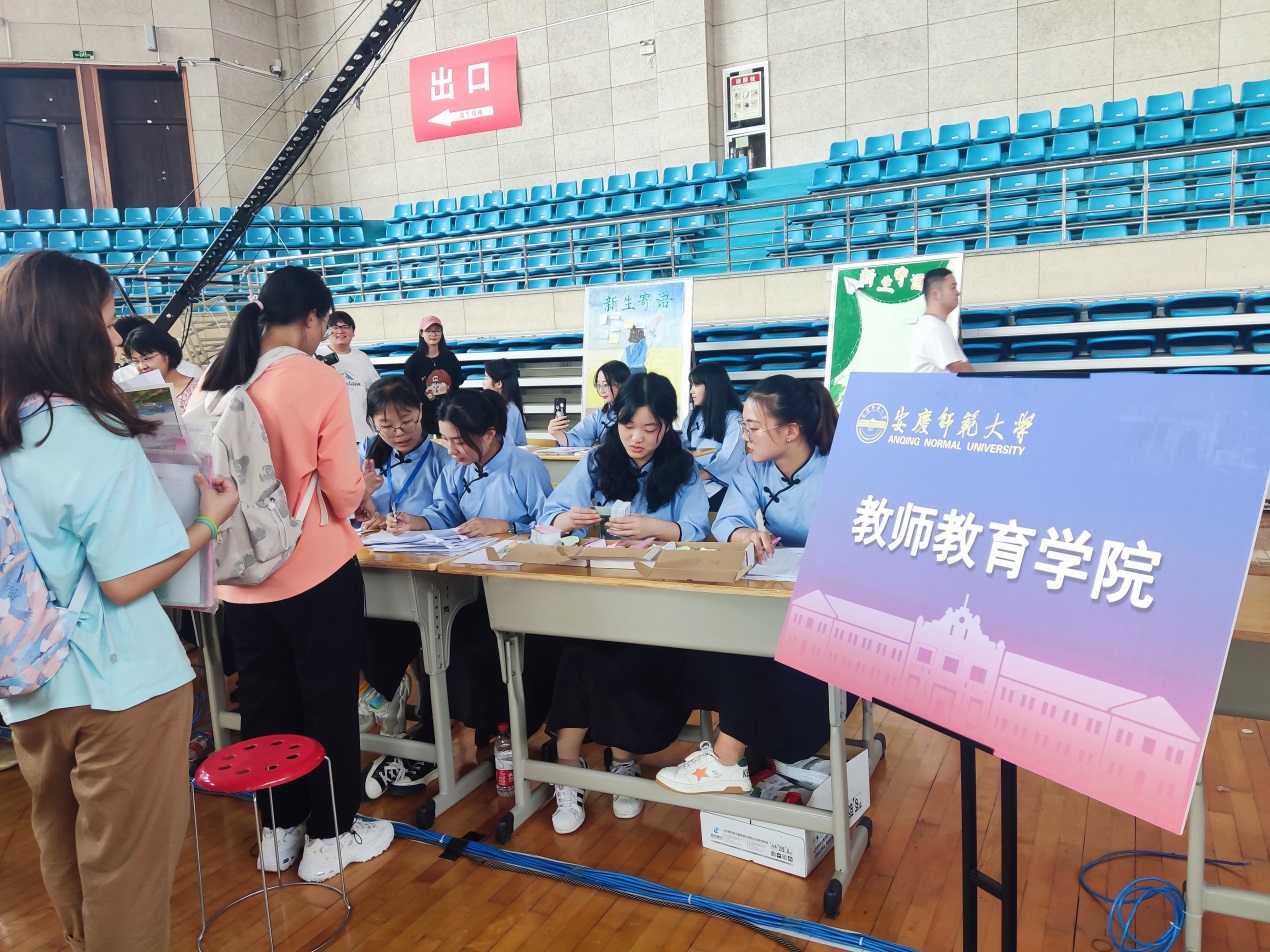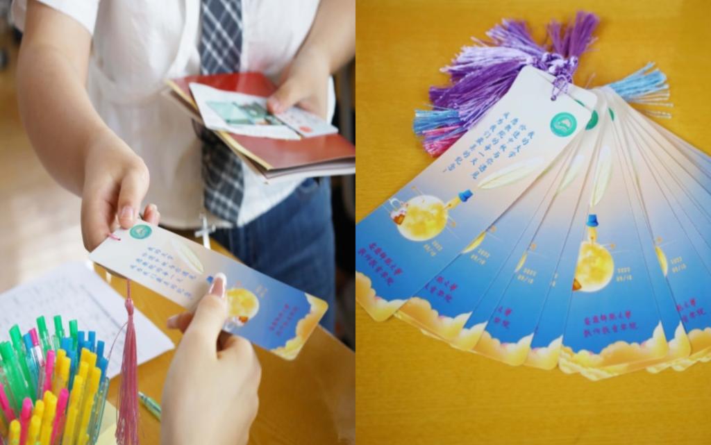 此次迎新,教师教育学院为新生们准备了印有学院院徽的及教师节、中秋节元素的“节日限定”书签,书签背面印有学院简介,新生们手持书签,在“新生寄语”的背景板上留下自己大学的第一抹印迹。“希望能够带给新生们一次特殊的入学体验,让他们在今后的大学生活中能铭记自己的初心,不断突破自己。”院团学负责人姚强诚说。