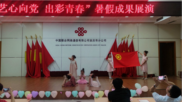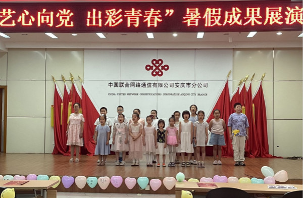竖笛合奏《茉莉花》、声乐独唱《我爱你,中国》、武术表演《精忠报国》……近日,音乐学院“三下乡”团队“音为爱”教育关爱实践团举办“艺心向党,出彩青春”暑期成果展演,9位小老师带领着17名小朋友于安庆市经开区联通公司为现场40余名观众献上了10个丰富多彩、各具特色的节目。