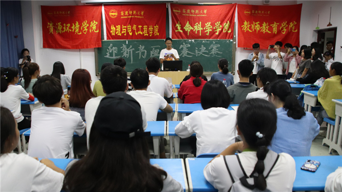 9月25日晚,教师教育学院、物理与电气工程学院、生命科学学院、资源环境学院联合举办迎新书画大赛决赛,用别开生面的活动献新中国70华诞。