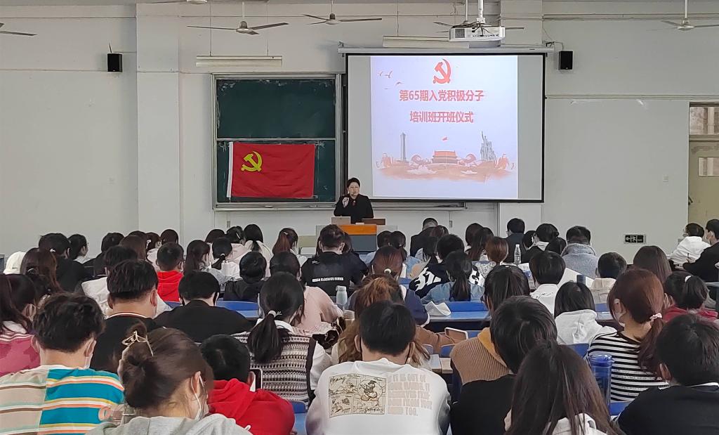 在庄严肃穆的《国际歌》中开班仪式正式拉开序幕。杨永久致辞,她对本期培训班的顺利开班表示衷心祝贺,向参加本次培训班的全体学员表示热烈欢迎。她强调入党积极分子参加集中培训是每一位要求进步学生的必修课程,是接受党的教育极好时机,对于入党积极分子,这不仅是难得的学习机会,也是政治生活中的一件大事,更是人生道路上迈出的重要一步。她对本期培训班全体学员提出3点要求,一是希望同学们可以端正态度,正确认识参加入党积极分子培训的重要意义,二是明确目标,努力提高入党积极分子培训学习效果,三是严格要求,圆满完成本次培训学习任务。