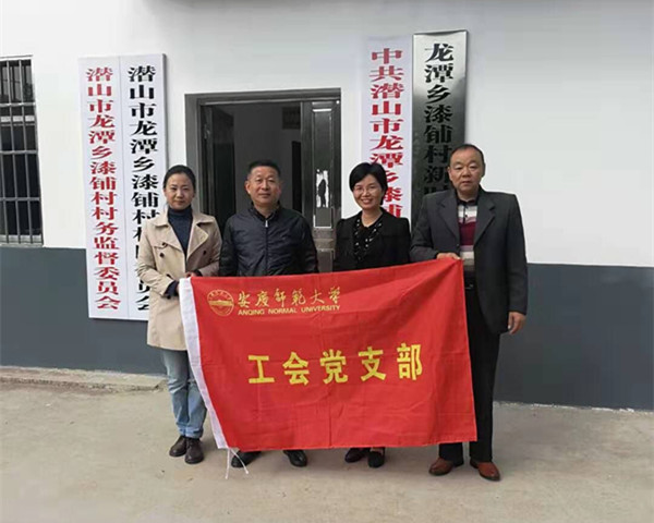 为认真学习宣传贯彻党的十九大精神和习近平总书记“不忘初心、牢记使命”重要讲话精神,推进“两学一做”学习教育常态化、制度化,扎实开展“不忘初心、牢记使命”主题教育,进一步提高党员的党性修养,坚定理想信念,牢记使命担当,11月6日,校工会主席孙永玉、副主席彭芳珍及工会党员干部赴潜山市龙潭乡县漆铺村开展“不忘初心、牢记使命”脱贫攻坚主题党日活动。