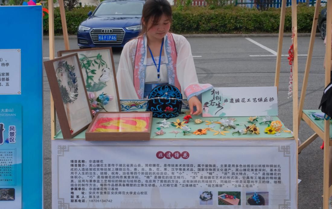 5月20日,非遗缠花工艺俱乐部和“栩栩若生”非遗缠花设计工作室受邀参加安庆市首届青年人才文化节——青年文创市集活动,以展示、解说、体验等方式宣传和推广非遗缠花,传播中华优秀传统文化。