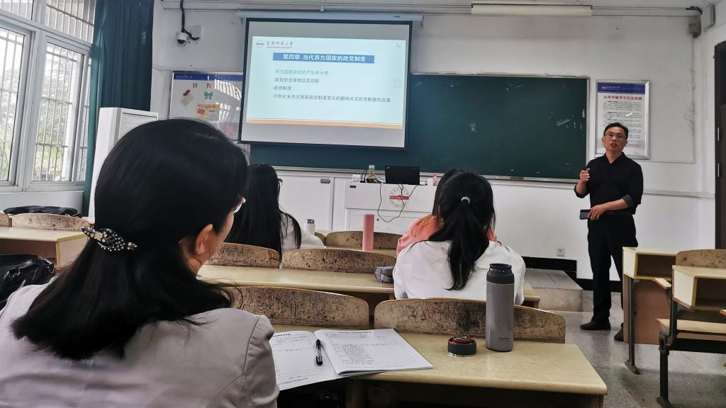 余江舟副教授开展了省质量工程课程思政示范课程“当代西方政治制度”的示范课教学展示,讲授了“西方国家政党的产生和分类”。余江舟通过课程思政示范课展示了先进的教学理念、严谨的课程设计、精巧的思政元素融入、生动的教学过程和良好的教学效果。教学过程中先后融入了文化自信、理论自信、制度自信和道路自信等思政教育主题。