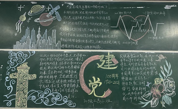 为庆祝中国共产党成立一百周年,巩固、深化“学党史,强信念,跟党走”主题教育成果,5月16日,化学化工学院团委举办党史教育主题黑板报比赛。