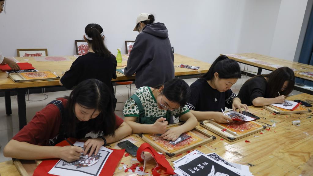 “你要将白色部分用刻刀刻除,留下黑色部分。”美术学专业2021(3)班的罗会学是剪纸俱乐部的成员之一,在本次体验活动中也充当着同学们的“小老师”,她时刻关注着体验剪纸的同学,并不时提供帮助。“这样的体验十分新奇。”她表示,今天从学习者变成教学者,自己不仅进一步掌握了剪纸的能力,还帮助了他人,看到同学们收获成品时的喜悦,自己也很有成就感。