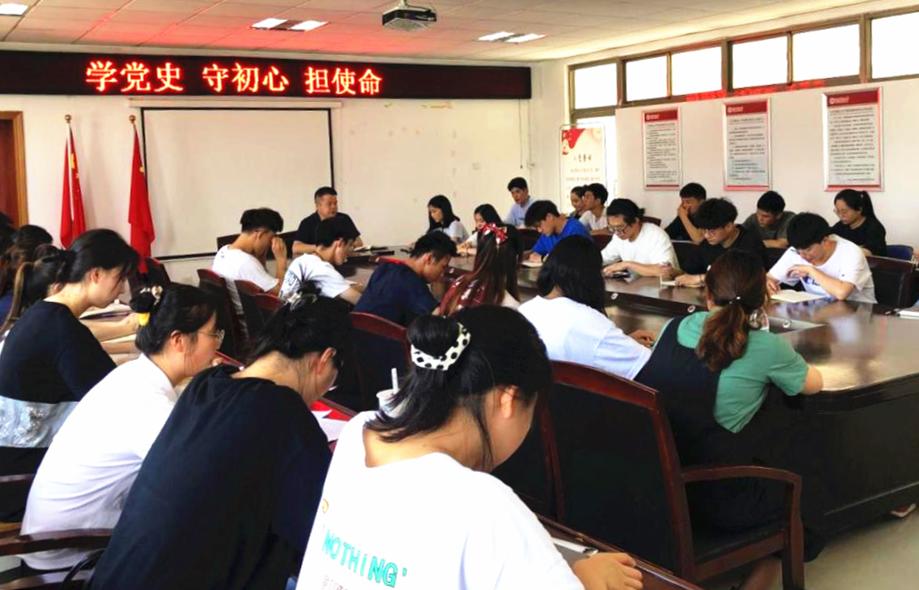 王开友首先详细介绍了中国共产党在新民主主义革命时期、社会主义革命和建设时期、改革开放和社会主义现代化建设新时期、中国特色社会主义新时代四个历史时期的发展情况,带领全体学生党员回顾了百年来党团结带领人民走过的光辉历程、取得的辉煌成就,然后围绕“从党史中学习什么”“为什么学习党史”“如何学好党史”三个方面,阐释了开展党史学习教育的重大意义。王开友强调,中国共产党的百年历史是一部践行党的初心使命的历史,回望过往的奋斗路,立足百年历史的新起点,新时代的青年大学生要从党史中感悟初心,要把党的成功经验传承好、发扬好,强化担当,鼓起新时代的精气神,为实现“第二个百年奋斗目标”贡献自己的青春力量。