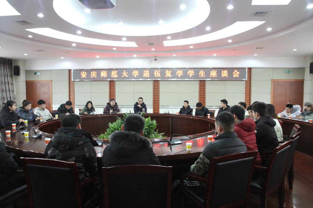 1月8日上午,校人武部在行政楼二楼会议室组织召开退伍复学学生座谈会,了解退伍复学学生返校学习生活情况。人武部部长夏建华、副部长汪博武出席会议,国防教育办公室负责人以及退伍复学31名学生代表参加了会议。会议由汪博武主持。