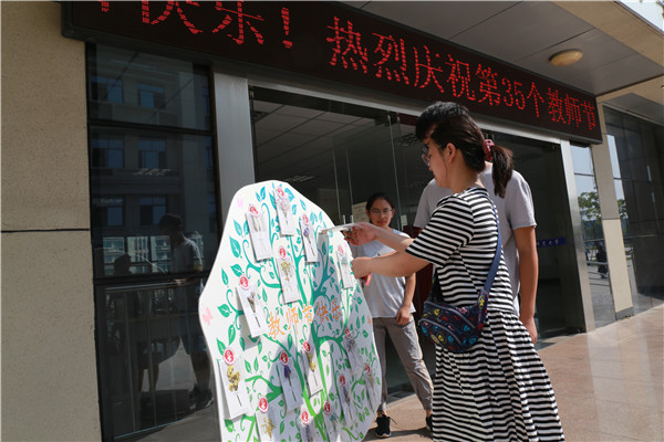 “我们这次活动没有选择一些华而不实的礼品,因为我们希望这些礼品能够用到实处,同时能够作为一种具有纪念性的礼品一直陪伴着老师。”活动负责人郭顶真挚地说道。当被问及举办这次活动的目的时,他表示:“老师们一直在教学生活中忙碌着,作为学生我们想向他们表达我们的感谢,同时也希望能给老师们留下一个美好的回忆。”(文/学生记者 吴霞 图/学生记者 刘莎)