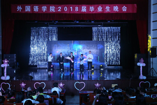 “我亲爱的朋友,不如一歌,在遗忘中不舍,醉醒交错,青春大概如你所说……”5月9日晚上,伴随着歌曲《青春大概》的响起,外国语学院2018届毕业生晚会在龙山校区音乐厅拉开帷幕,近500名师生共同观看此次晚会。