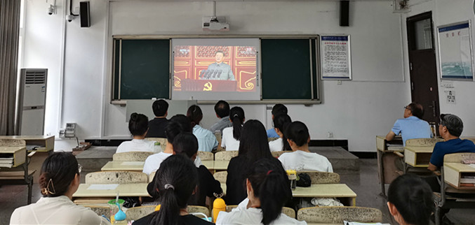 7月1日上午8:00,马克思主义学院在文源楼B204教室组织观看庆祝中国共产党成立一百周年大会,马克思主义学院党委书记金文斌、部分党员教师学生、入党积极分子认真收听收看大会直播。
