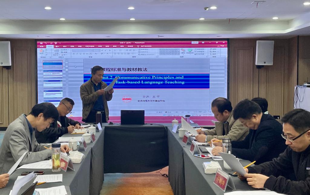 为了深入推进《英语课程标准与教材教法》国家级一流课程建设,11月6日至7日,外国语学院召开该课程建设专题研讨会。安徽师范大学外国语学院副院长许炳坤、皖西学院外国语学院院长曾必好、安庆市外国语学校校长黄文莉、芜湖市教育科学研究所所长吴友义、安庆市教育教学研究室副主任陈俊、合肥工业大学附中高级教师曾广华、安庆七中特级教师檀宜平等近20名来自安徽省高校、地级市教研室、中学的英语教育专家、教研员、教学名师,以及外国语学院《英语课程标准与教材教法》课程组全体教师参加了会议。会议由外国语学院院长、《英语课程标准与教材教法》课程负责人王先荣教授主持。