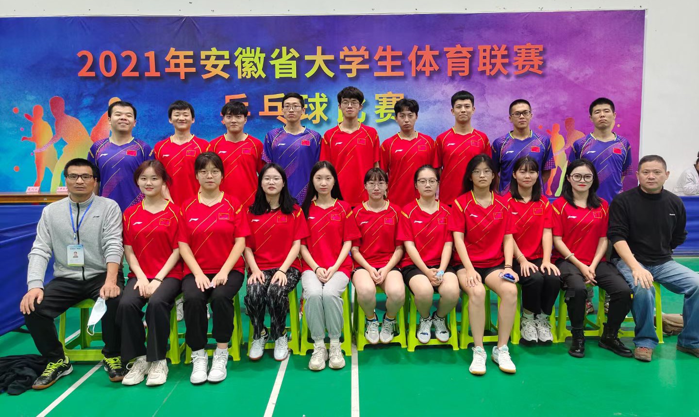 10月31日至11月7日, 2021年安徽省大学生体育联赛乒乓球比赛在淮南师范学院小球馆举行,beat365官网代表队分别参加了甲组和丙组的比赛。