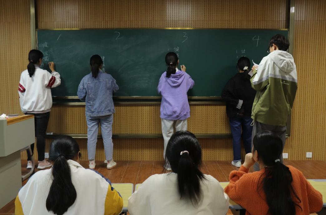 汉字听写、字谜游戏、现场记忆……决赛分为“应知应会 轮番上阵”“此起彼伏 字谜游戏”和“争分夺秒 现场记忆”三轮。在决赛中,四支队伍势均力敌,各队队员轮流上场,比赛现场氛围激烈,最后新闻传播学类专业2021(2)班的“十八”队以一分之差打败网络与新媒体专业2020(2)班的“对对对对”队获胜。比赛中,队员们纷纷鼓励上台听写的选手,给予他们充分的信任。
