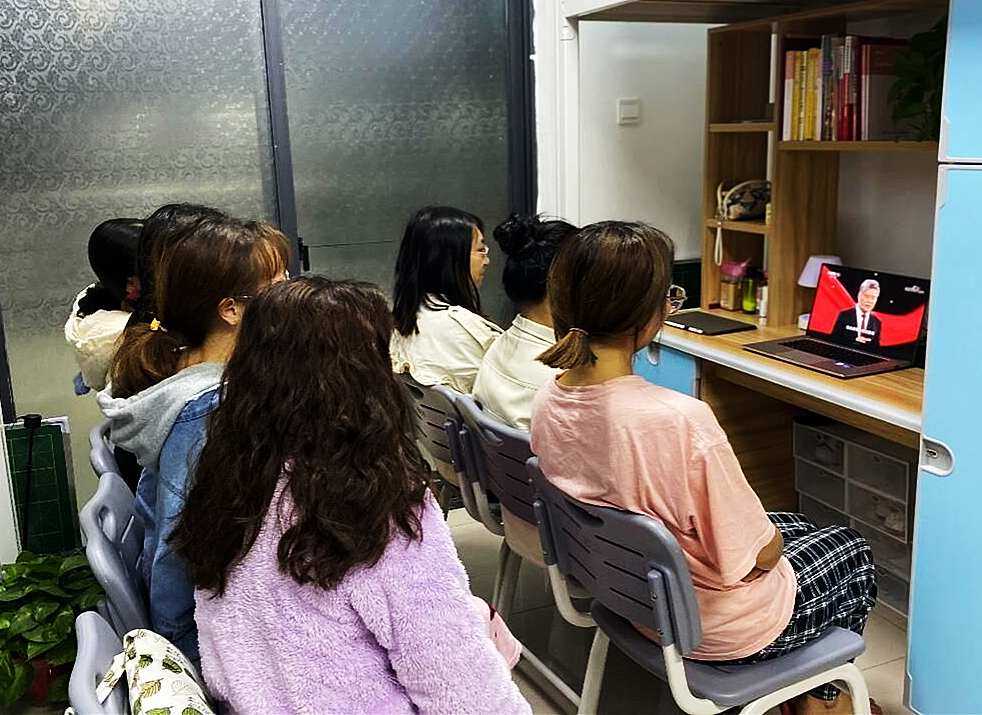 10月16日晚,马克思主义学院研究生党支部组织研究生党员和入党积极分子在宿舍观看学习《党课开讲啦》。