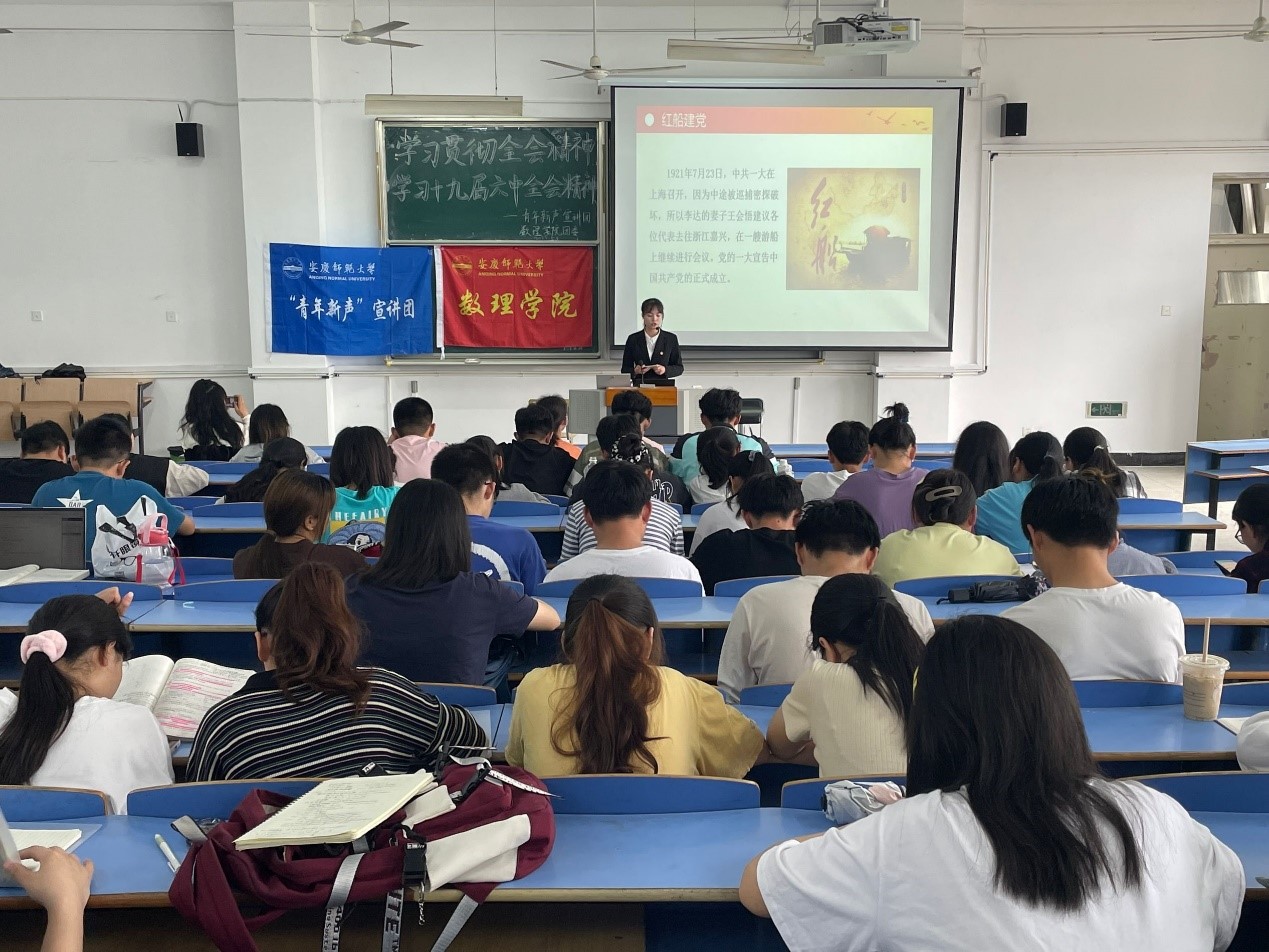 5月8日,数理学院举办“学习贯彻十九届六中全会精神,做新时代新青年”主题宣讲会。该宣讲会邀请beat365官网“青年新声”宣讲团为该院学生进行宣讲,学习贯彻十九届六中全会精神,深刻领会党百年奋斗的历史经验和光辉历程。数理学院共100余名学生参加此次宣讲会。
