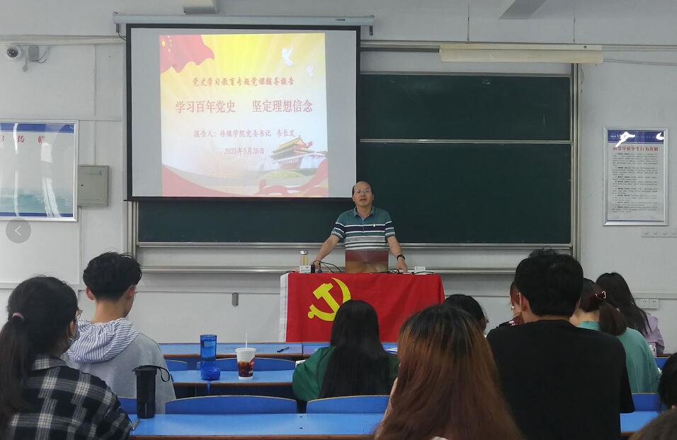 韦长发围绕“学习百年党史,坚定理想信念”这一主题,从正确认识中国共产党的百年光辉历程、百年党史对共产党人坚定理想信念的独特价值以及学习百年党史重在进一步坚定信仰、信念和信心等三个方面进行了深入阐述。他带领大家重温了百年党史四个阶段的光辉历程,并强调指出百年党史为中国共产党人坚定理想信念提供了历史经验和智慧、精神指引、理论支撑,他要求广大学生党员要用革命先烈的高尚情操和无畏精神激发信仰、砥砺品格,用党的光荣传统和优良作风坚定信念、凝聚力量,用党的奋斗历程和伟大成就增强信心、鼓舞斗志,以昂扬姿态奋力开启全面建设社会主义现代化国家新征程,扬信心之帆、举实干之旗、立争先之志,努力创造无愧于党、无愧于人民、无愧于时代的优秀业绩。