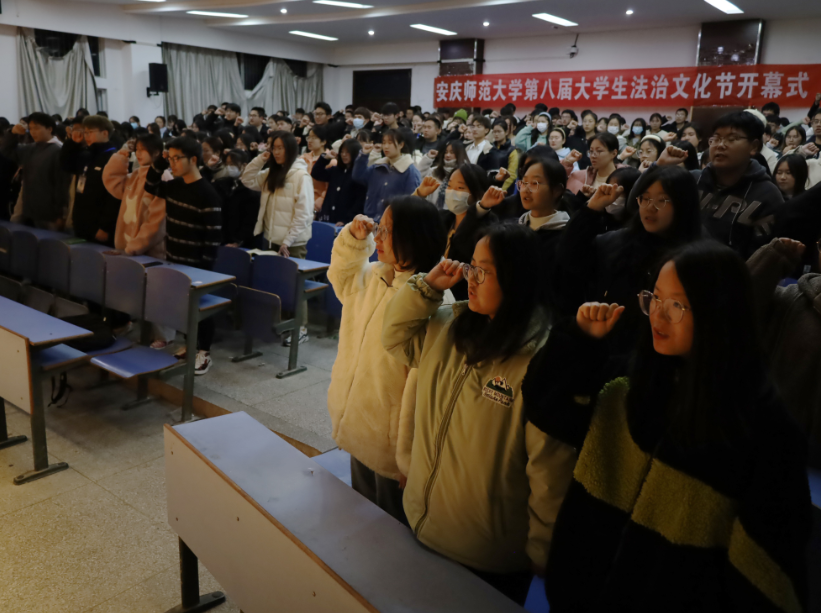 12月1日,法学举行第八届法治文化节开幕式。法学院副院长朱留虎、党委副书记从光梅、分团委负责老师、2021级新生辅导员和院学生会全体成员、“聚力”学生党员服务站成员、小角志愿队全体成员、2020级各班班干以及2021级本科生共200余人参与开幕式。