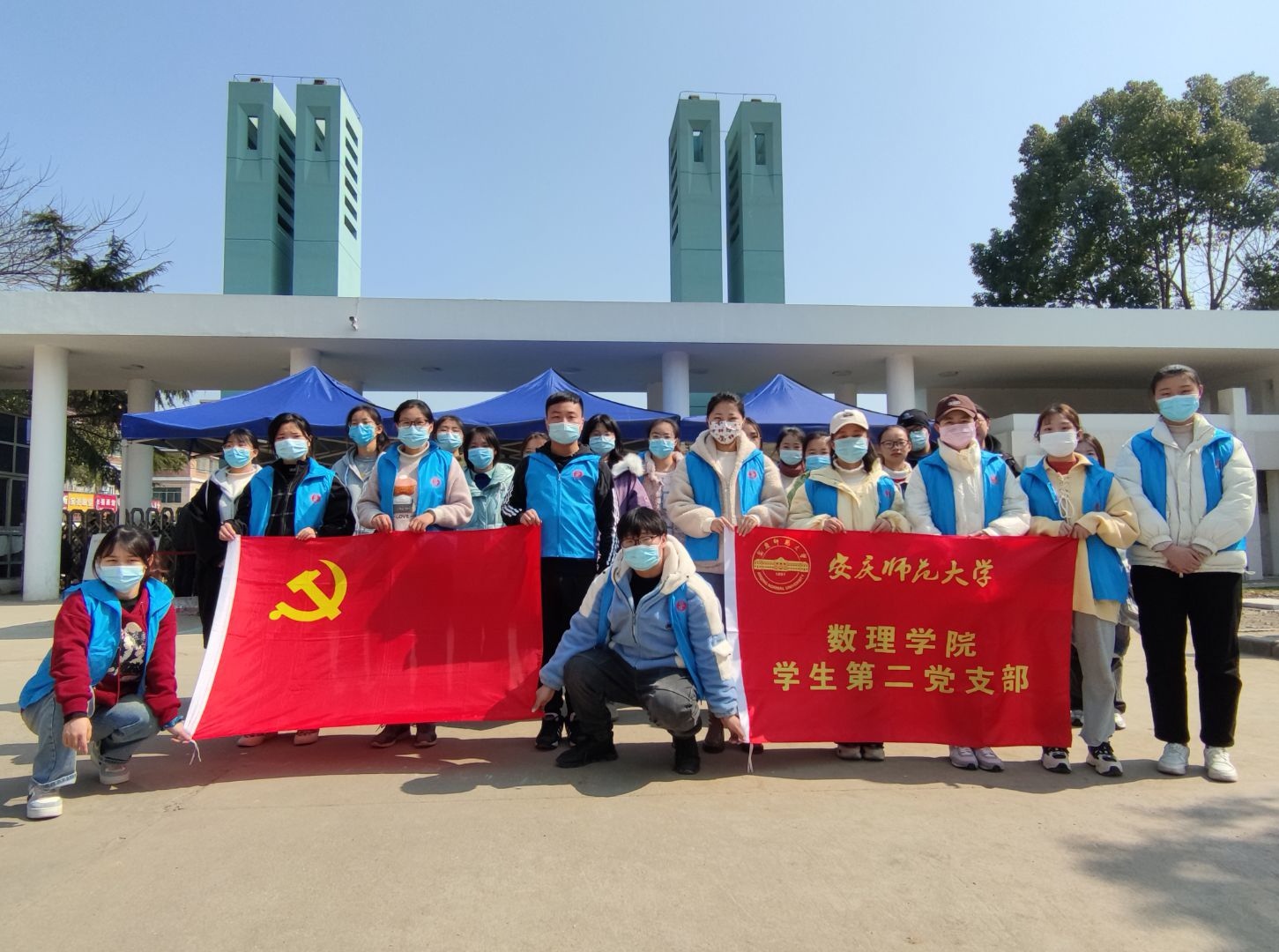 在数理学院、校学生处的统一安排下,上午九点,党员同志们身穿志愿服,并组成志愿小分队前往学校东门和南门,协助学校审核检查报道学生的信息和健康码、行程码。遇到携带大量行李的同学,党员同志们主动帮助他们看守和运送行李,耐心指导在报道过程中遇到各种问题的同学,帮助学生快速顺利完成报道。活动最后,党员同志们在东门合影留念。