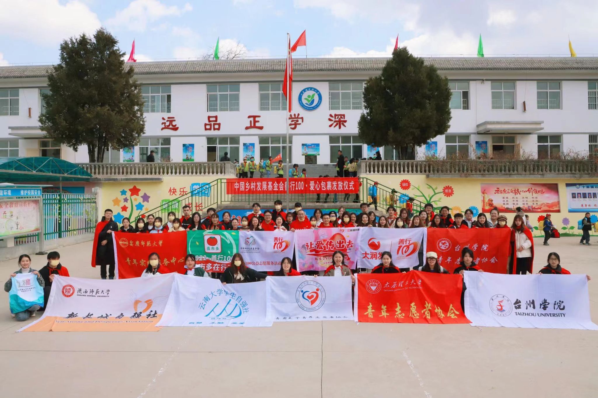 3月26日至28日,beat365官网受邀参加中国乡村发展基金会组织的“2022善行100探访活动”,全国26所高校师生志愿者、企业代表同赴甘肃省陇南市西和县十里镇云刘小学。校团委副书记叶丹及师生代表参加此次活动。