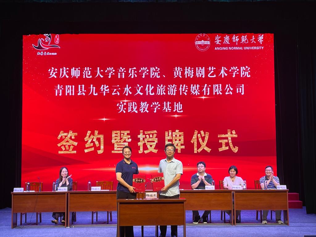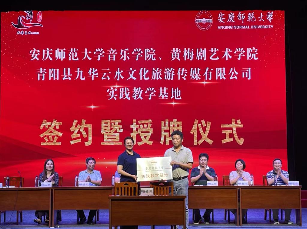 九华云水文旅公司(青阳腔)作为安徽省非物质文化遗产传承基地,以传承发展保护国家级非遗代表性项目青阳腔、九华民歌等青阳非遗文化为特色。实践教学基地的建立,对于两个学院拓展校企合作领域、传承中华优秀文化、提升人才培养质量、促进学科建设等都将具有积极意义。(撰稿:方尧杨 摄影:孙艺铭 编辑:江伟 审核:徐冉 赵丽丽)