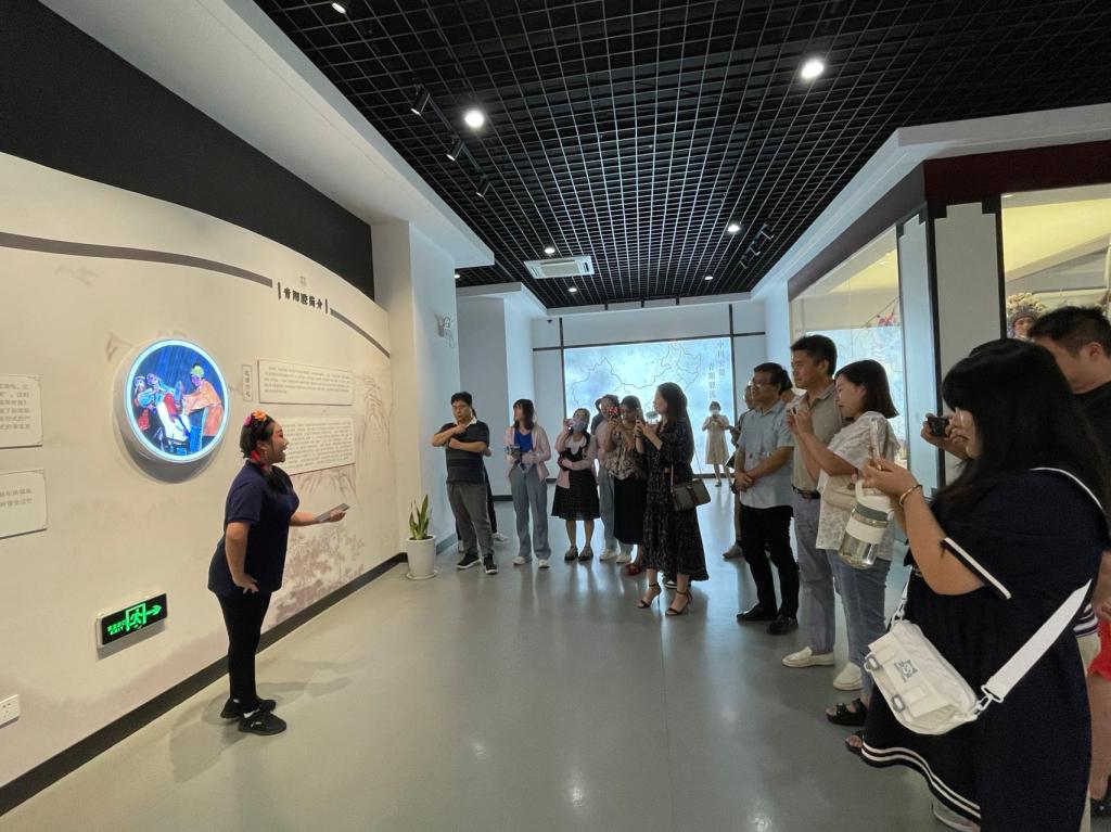 音乐学院与黄梅剧艺术学院一行参观考察了青阳腔博物馆,对首批国家级非物质文化遗产青阳腔的源起、传承、传播、发展等进行深入调研。在青阳腔博物馆小剧场观看了九华云水公司先进党员、以青阳腔省级非遗传承人江进为主人翁创作拍摄的党教片《山花烂漫》。