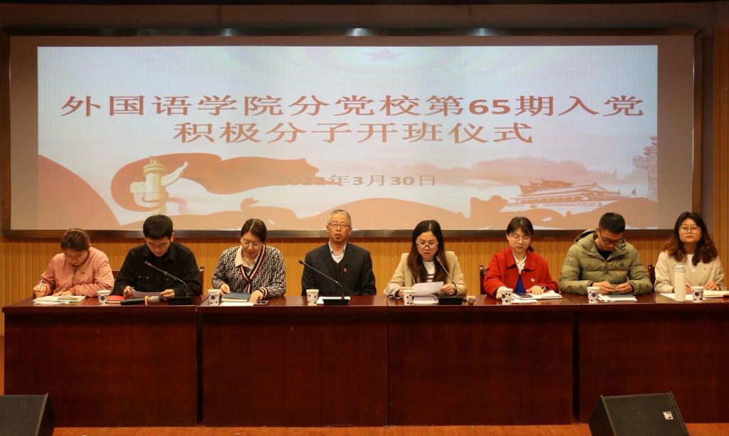 3月30日,外国语学院第65期入党积极分子开班仪式于E503召开。外国语学院党委书记李亦亮、党委副书记王惠、各学生党支部书记和第65期入党积极分子培训班全体成员到场参加。会议由王惠主持。