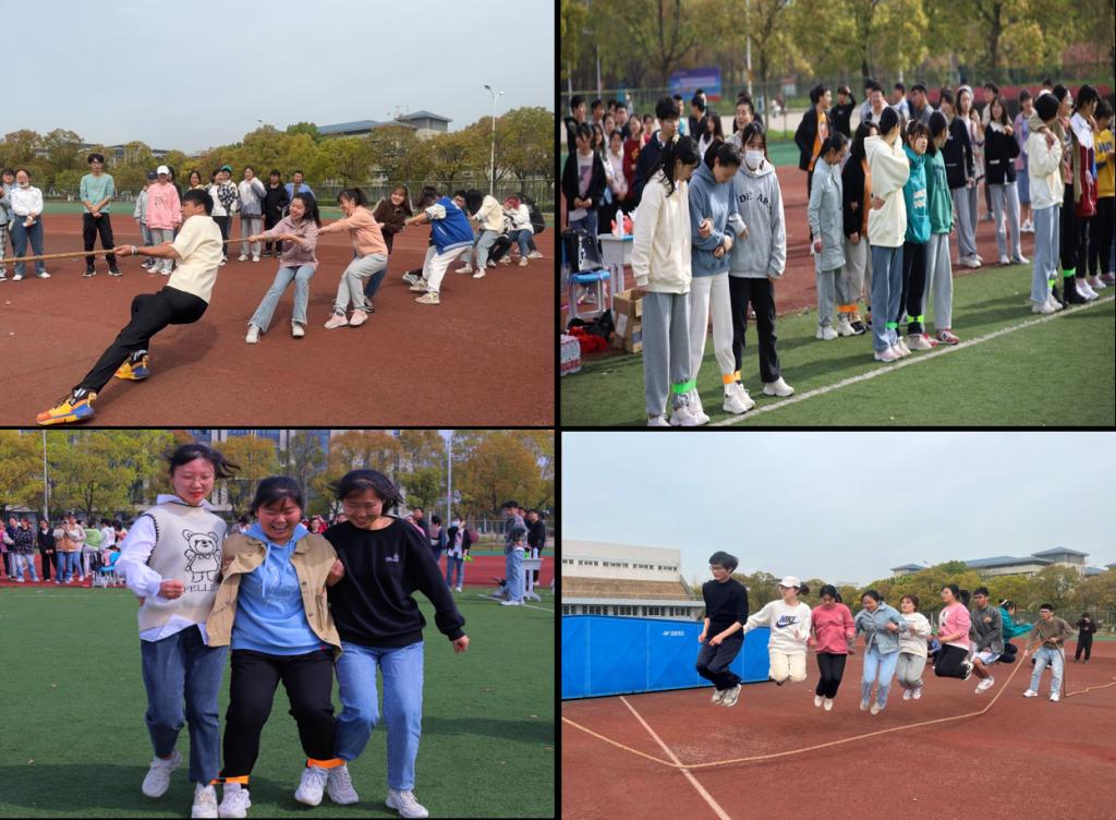 “一二、一二、一二……”伴随一声哨响,三人四足小游戏正式开始,只见左右脚被绑在一起三个女生肩并肩一起迈向终点。一根绳子,两支队伍,双方选手都卯足了力气反向拉拽,绳子上绑的布条来回摇摆,激烈的“比拼”人一旁的学生大声喝彩。食品科学与工程专业2021级的左冰雪所在的队伍取得了最终胜利。“在赛前我们对组内成员进行了简单的部署,由一名男生打头阵,另外两名男生则在绳子末端‘贡献力量’。”左冰雪也分享了拔河的“秘诀”,拔河的关键在于团结,能够赢得这个荣誉,离不开队里每一个人的努力。