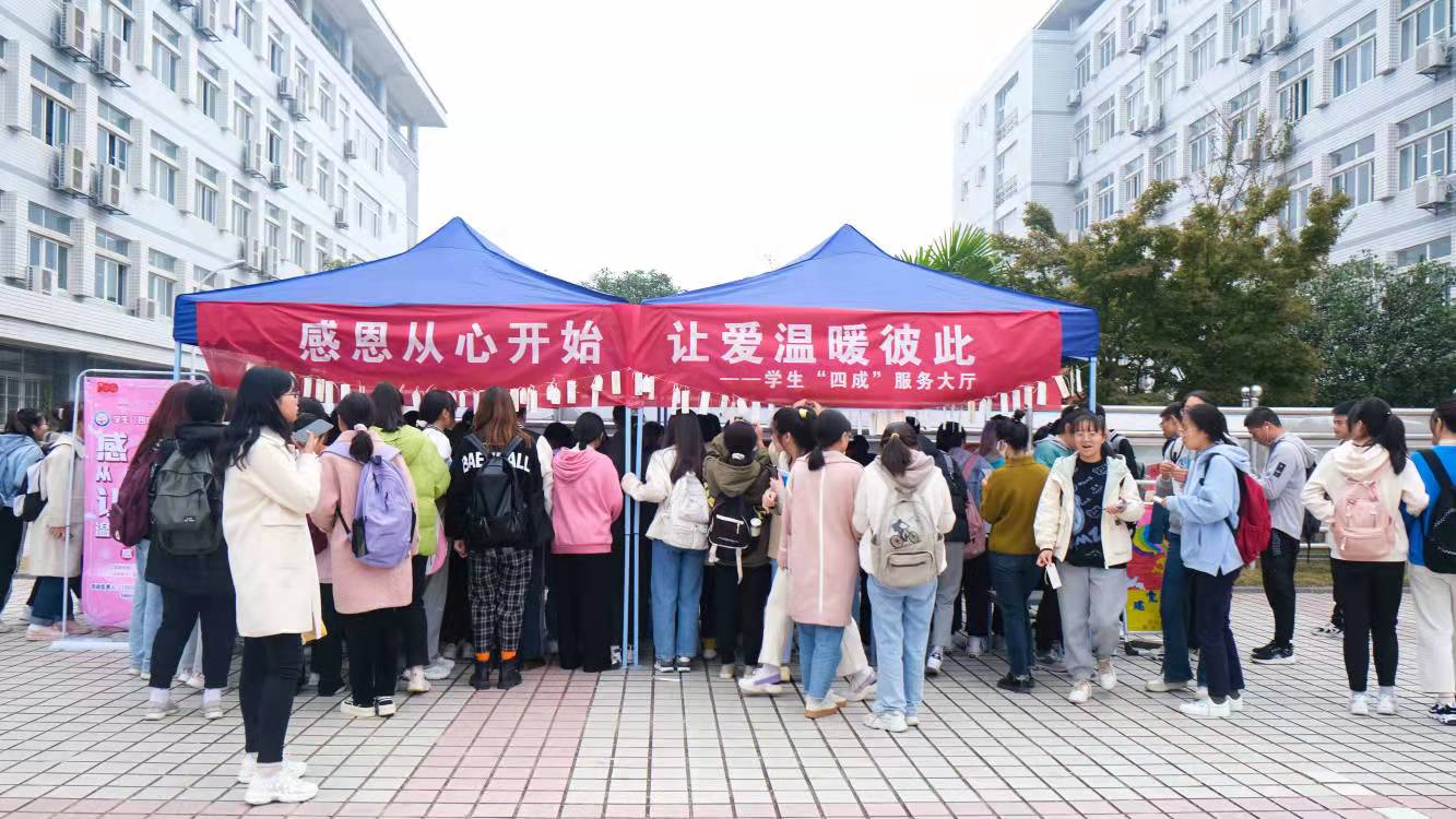 11月15至19日,学生“四成”服务大厅在敬敷广场和文溯楼100教室举办“感恩从心开始,让爱温暖彼此”感恩周活动,1700余名学生参加。截止活动结束,一共收到了206张“三行情书”的书签和187张明信片,426份校内信件,321份校外信件,9份手工作品。