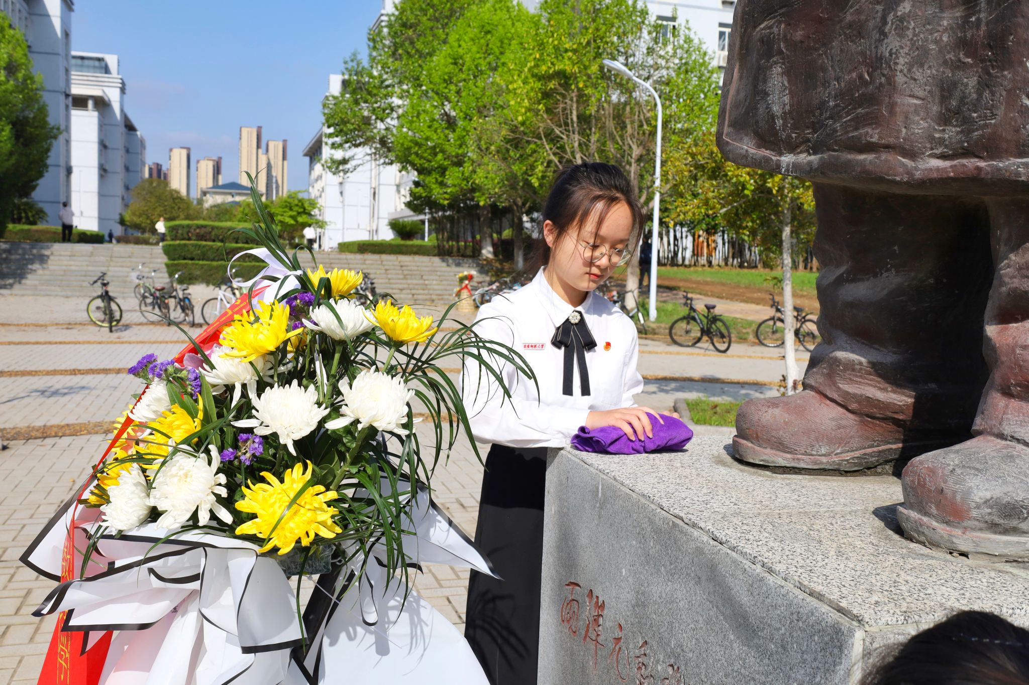 “我们在稼先广场深情朗诵、献花行礼、擦拭雕像,以此表达‘稼先学子’心中对邓稼先院士崇高的敬意。”学院团委老师表示,希望通过本次活动鼓励学生继承先辈之愿,致敬先辈精神,以积极进取的姿态展望未来。