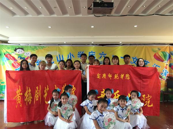 近日,音乐黄梅剧艺术学院优秀文艺四进之“大手拉小手”庆“六一”主题活动在安庆市五横乡虎山小学举行,该院文艺四进演出团队与虎山小学的孩子们一起进行了“快乐童心 畅想六一”的文艺汇演,共同庆祝第67个国际儿童节。
