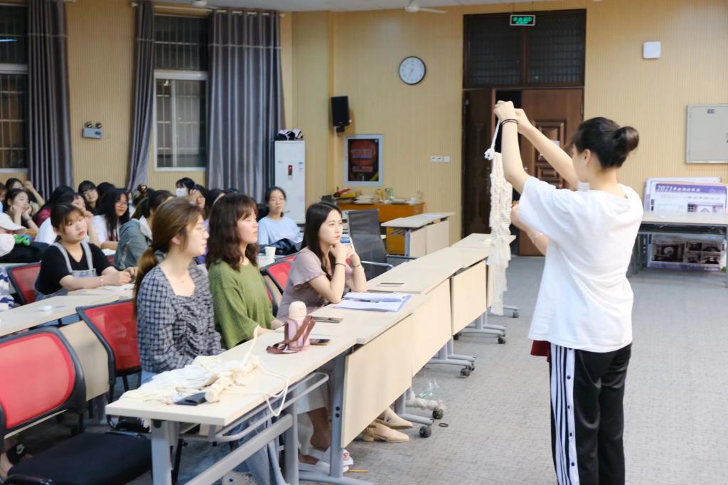 5月24日,美术学院手工俱乐部举办作品交流会,皮具、编织、缠花三个班级的成员分别对这一阶段的作品进行了交流,探讨了作品的制作经验,负责人18级环境设计班汤小曼全程进行指导,交流会共50余人参加。