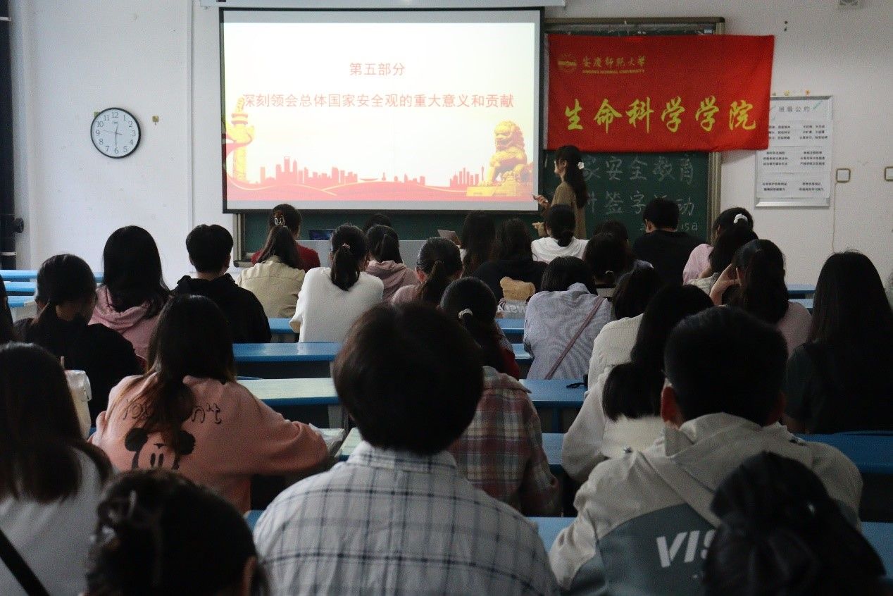 4月15日,生命科学学院在G103举办“国家安全 共同守护”主题宣讲签名活动,进一步做好国家安全教育宣传,近百名同学参加活动。